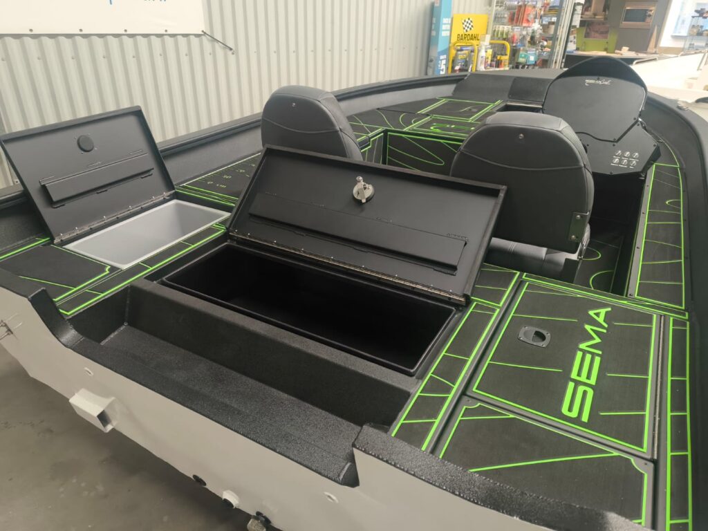 – Sea-deck in de gehele boot kleur Zwart / Limegroen